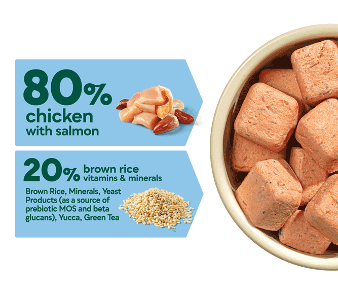 Puppies love the taste of chicken and salmon, making our 80/20 puppy nuggets the obvious choice for growing pups. Suitable from weaning, our easy to serve raw nuggets for puppies are made with chicken and salmon, plus wholesome brown rice and reinforced with vitamins and minerals.