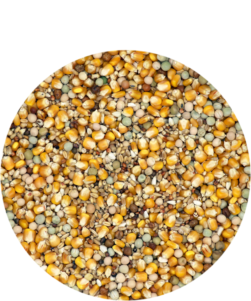 Basic grain mixture with premium cribs maize. This mixture can be used during the breeding and racing seasons.